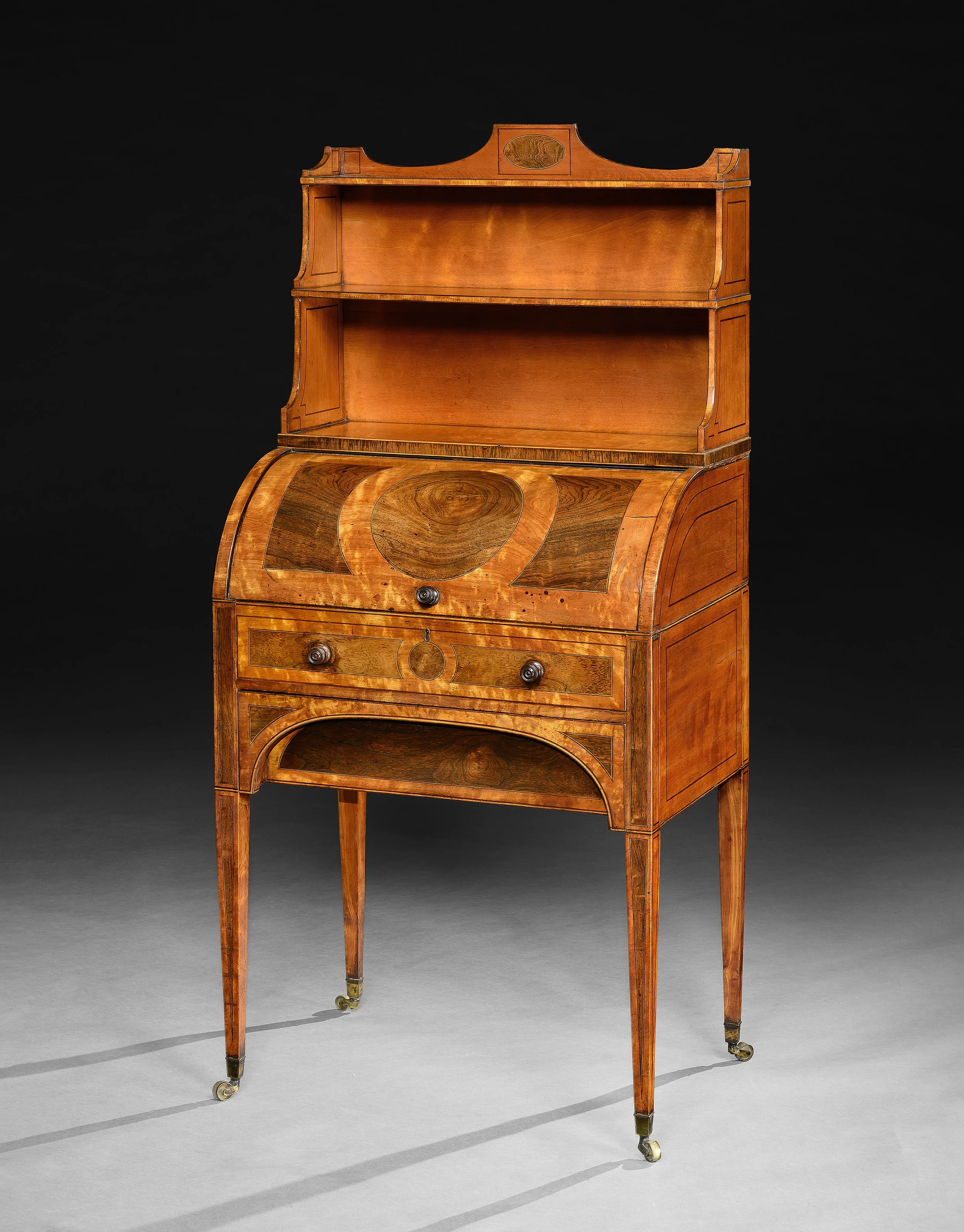 A Late George III period Satinwood and Rosewood-Crossbanded Cylinder Desk