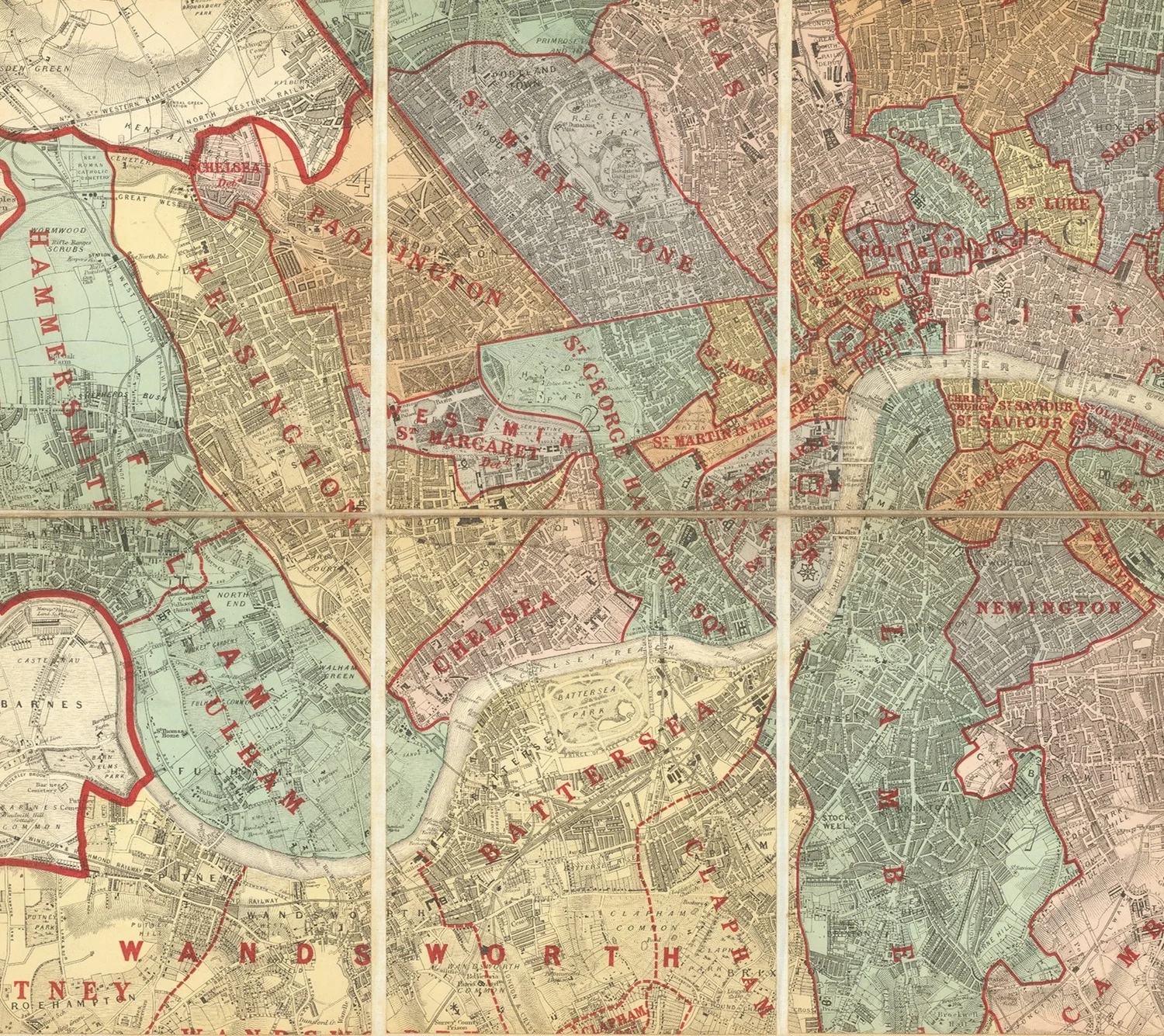 This map was produced at a moment when London was undergoing rapid expansion and administrative re-organization. In the late 19th century there was increasing demand for accurate urban mapping reflecting civic and parish jurisdictions.