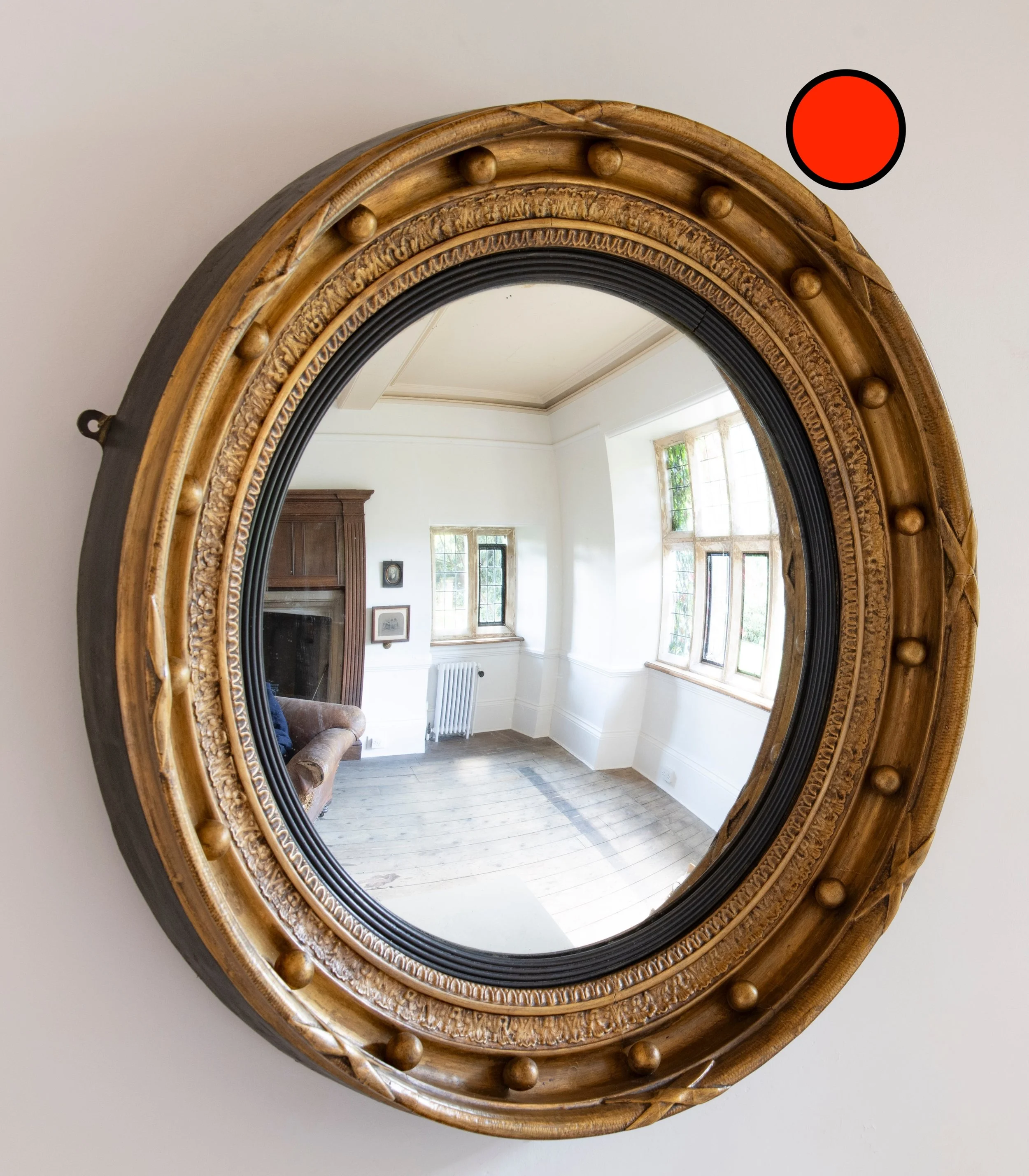 A LARGE REGENCY PERIOD CONVEX MIRROR