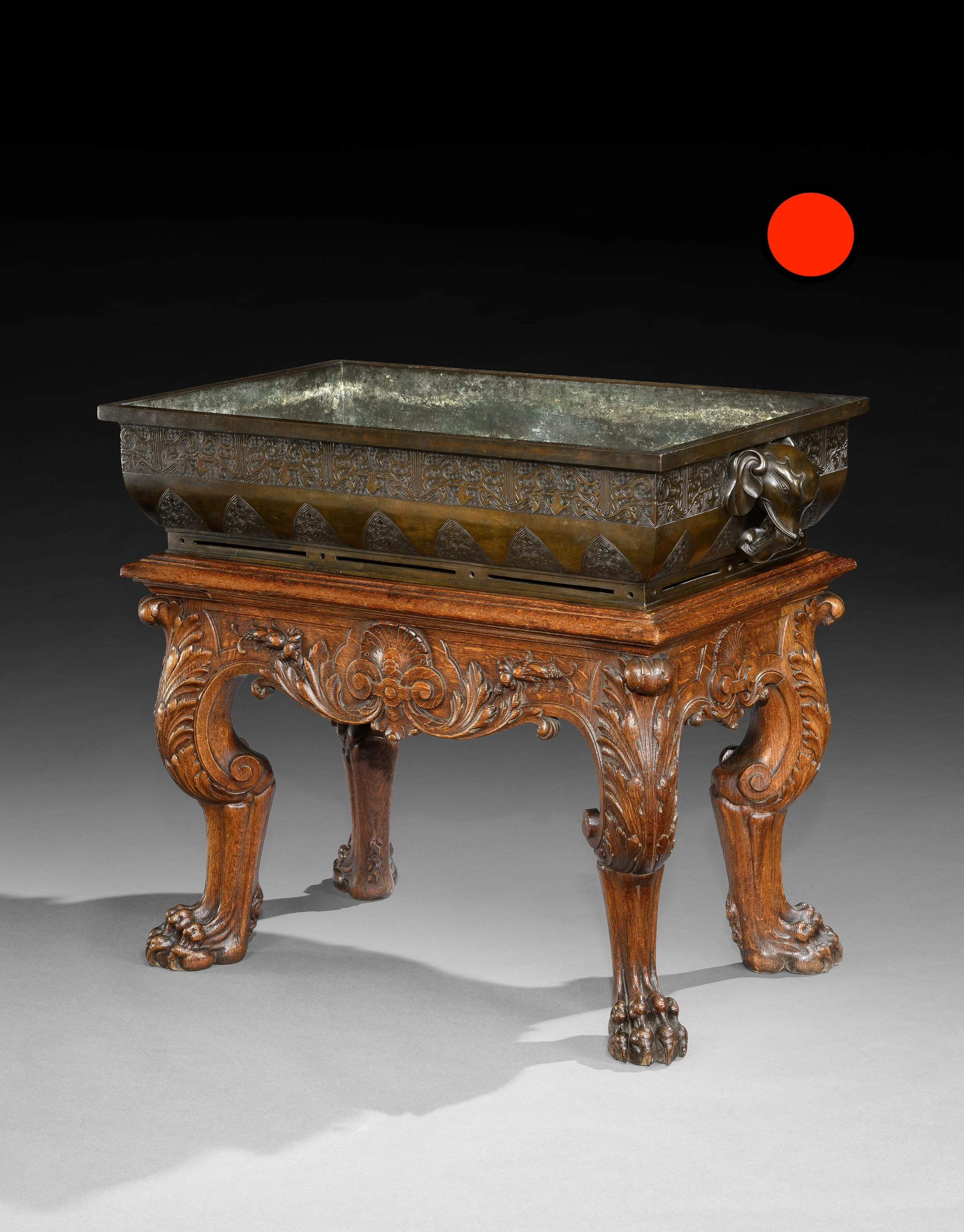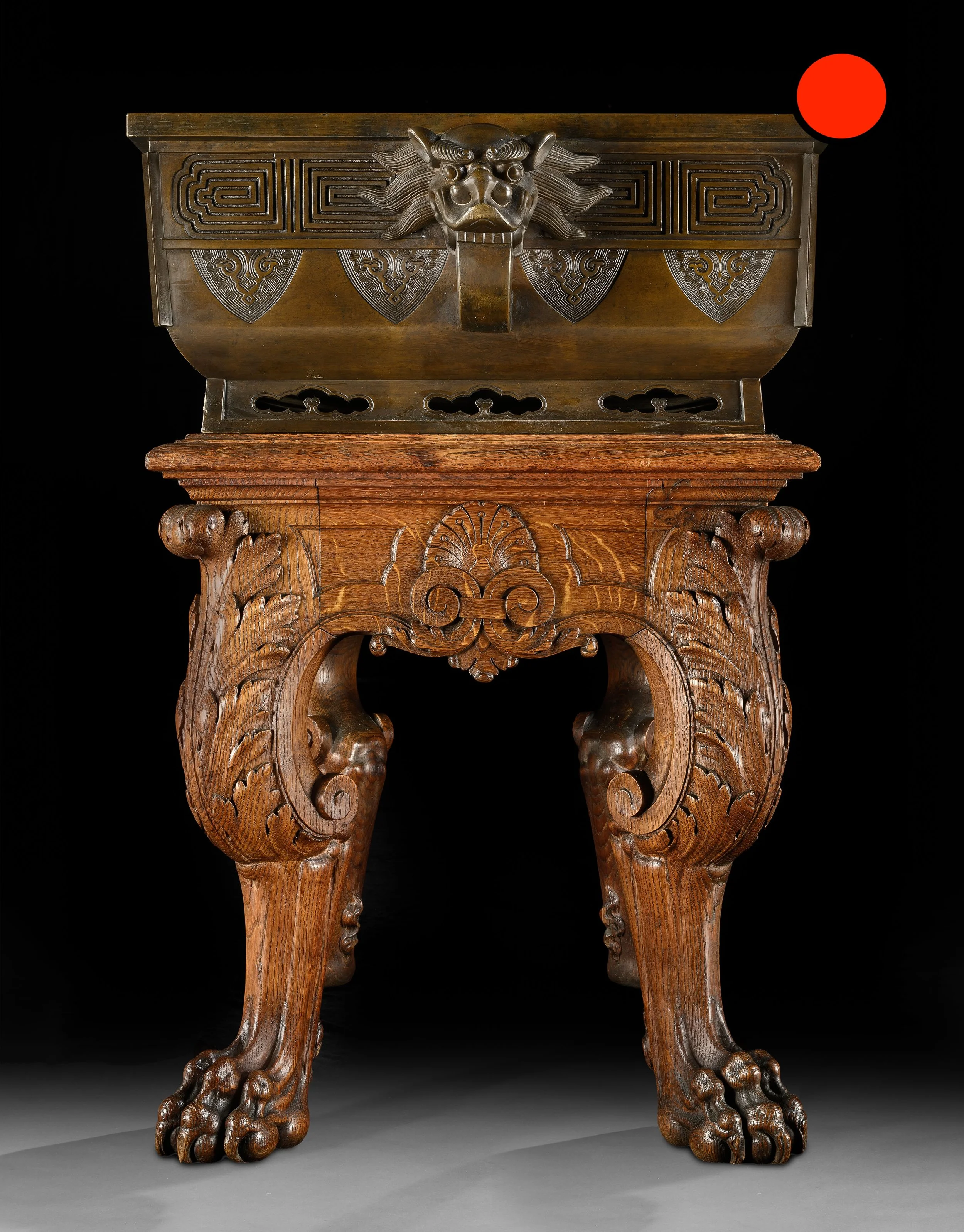 AN EXCEPTIONAL 19TH CENTURY JAPANESE VESSEL ON A MID 19TH CENTURY ENGLISH CARVED OAK STAND