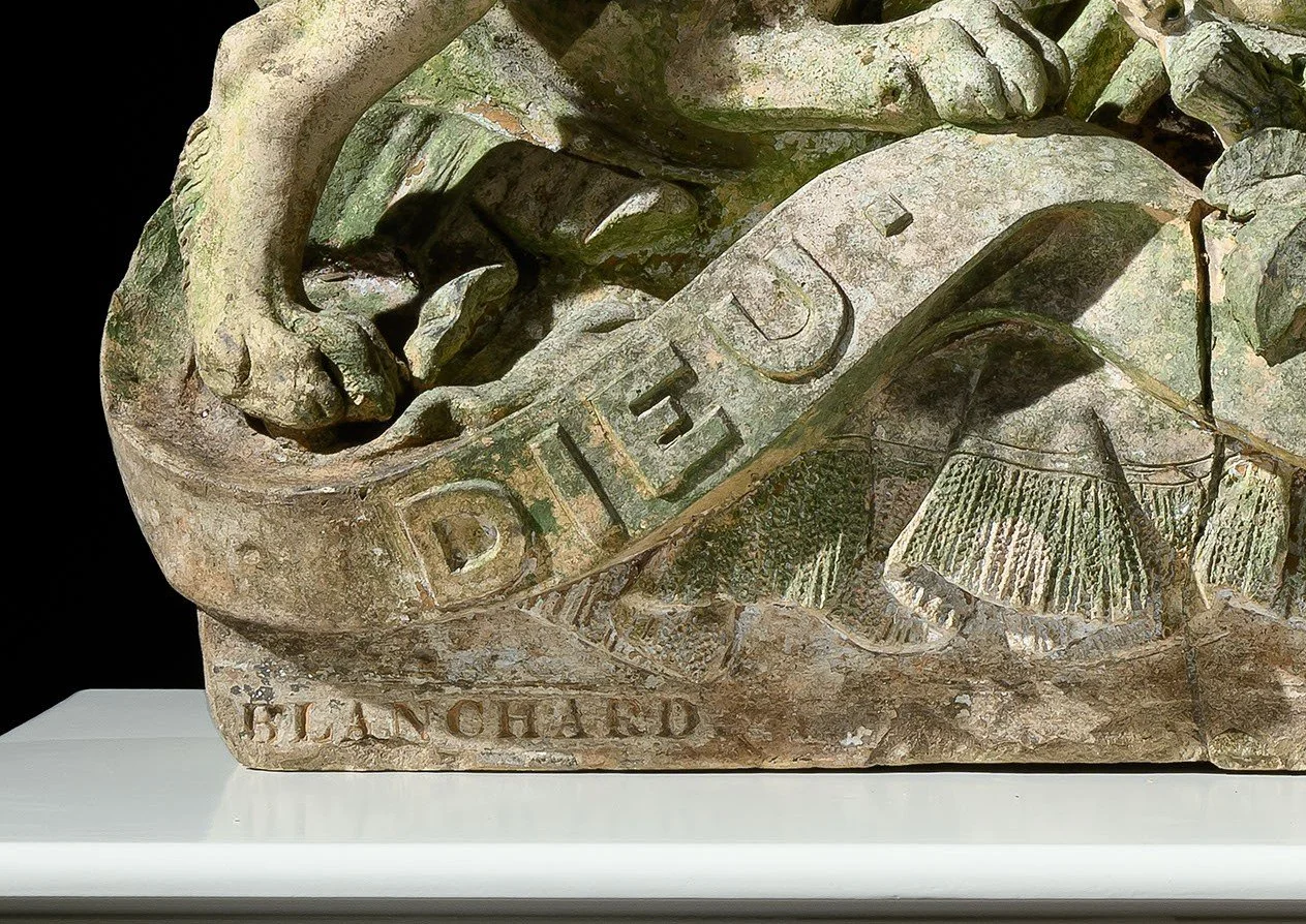 The modelling is bold and confident, reflecting Blanchard’s mastery of large-scale terracotta and his close association with the traditions of the Coade Factory.