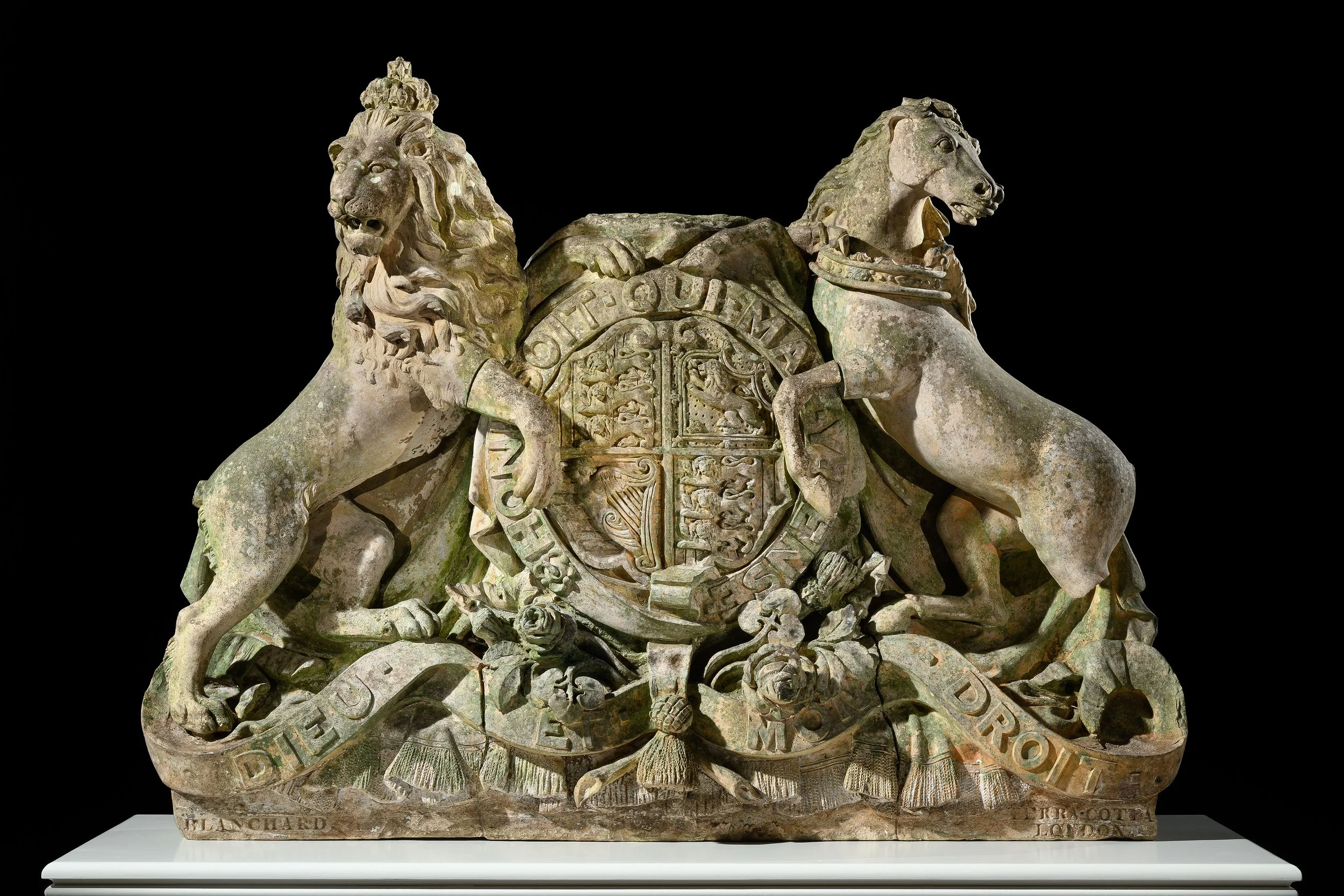 A very rare and imposing mid-19th-century terracotta Armorial by the celebrated Victorian manufacturer Mark Henry Blanchard.